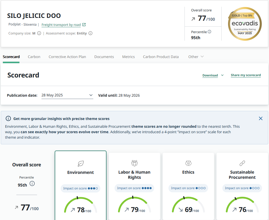 Our commitment to environmental and social responsibility is demonstrated through our ratings on the EcoVadis platform and our membership in the Operation Clean Sweep initiative, which aims to reduce plastic waste in the environment.